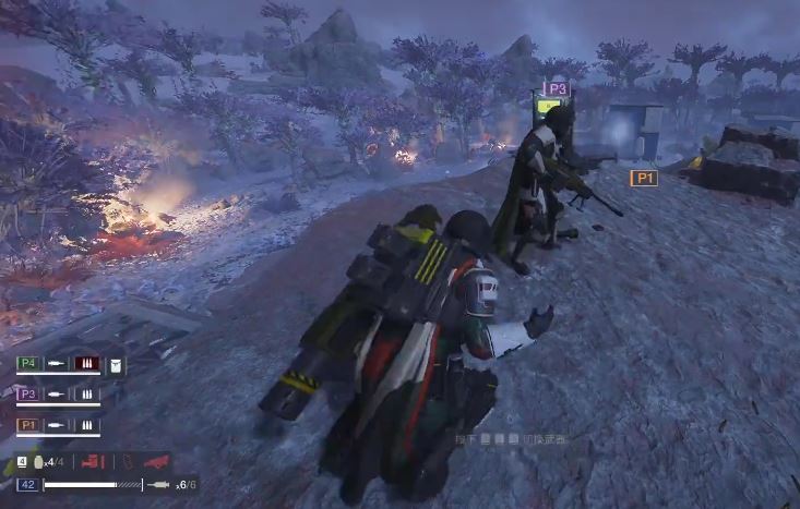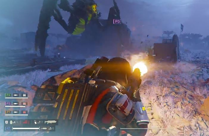 重炮手主要是對付在地上時對抗隱身蟲和指揮官。60發的擊退也能幫助隊友,現在也有邊打邊換彈的BUG所以續航也強力,唯一不足的是射速稍慢,但是依舊強力。延遲雷主要是在地上被跳蟲包圍了往腳下丟一顆或者各種角度炸巢穴時會比摔炮方便。