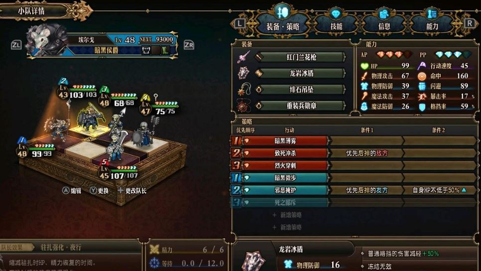 精靈核爆隊就不多說了,也算是比較萬金油的一個隊伍了,接下來隆重介紹一下打完一週目之後發現的比較逆天的角色,dark隊,這隊算是半個玩具隊,主要是沒東西給他們了,所以請官方速速二週目,這隊目前差的是生存能力,秒人是實打實的,說實話這三個dark領主單拿出來就可以組三個dark隊,那樣東西就得要太多了,直接融到一隊來了,理論來講你把親媽換成劍聖更好,但是劍聖我放在另一對的所以就懶得弄了,這隊的特點其實跟獅鷲隊的想法差不多就是吃附加屬性,但是吃的是火,這隊全靠奈傑爾打傷害,那個魔女就是助燃機和地震發射器。開局一個全體免傷,已經贏太多了。但是缺點是速度比精靈妹妹慢,永遠都先手不了。這套逆天就逆天在奈傑爾的一個技能,結尾能秒一個半血,而且人人都能上火讓親媽和傑哥打傷害,看著真的很爽,傑哥盾牌換加ap的更好但是暫時只有一個盾所以很難受,而且老鼠人的技能也是逆天,擋招式還能偷技能點,真的離譜。dark隊要是能二週目指定爽死。