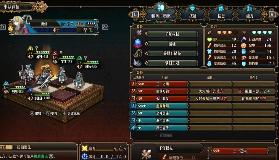 首先是老賴隊,這是專門打PVP的,整個流程到了後期就是邊打邊強,這套我大概三十級左右拿了死士之後就一直在改,後面發現到了第五章圖的時候那個天使的黑暗是真的噁心就一直在想法子最佳化,後來我發現了有個飾品賊離譜就是燈火戒指,只耗費一個ap還給你全程防黑加命中簡直神中神,另外天使自帶技能給人上黑暗,不用多說偉大。其次是女巫,帶三一權杖感覺不是很OK,能放出來但只能放一次,主要是我的玩具隊在用,這邊就用暴風雪,暴風雪強在三段攻擊附帶凍傷,是我這隊傷害的主要來源,女巫就只放暴風雪,開局給男主附一次魔,中途給死士附一次魔。女主的定位就是打驅散,另外一個神一般都飾品就是老魔女戒指,抵消一次魔法攻擊+2pp,神中神,天克黑皮精靈妹,這套就是專門打精靈妹妹的,其他不是特別離譜的都能打。最後是死士,一個非常能抗的角色,我反倒覺得她輸出一般般,而且那個耗費2ap的技能我現在都沒搞懂,玩到後面純拿她當肉了,能抗魔法能抗物理。
