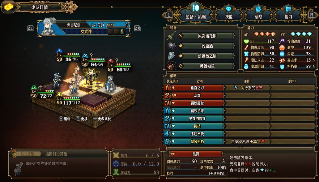 亂舞:2AP=1PP+150倍率攻擊(三段攻擊、無視防禦50%、無法格擋)