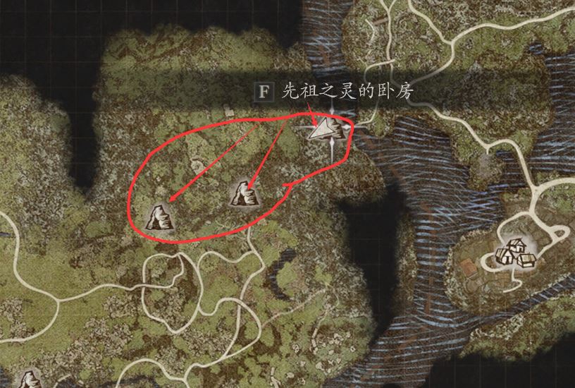 地點是救精靈村長女兒的那個洞裡,叫先祖之靈的臥房,我看這裡有個捷徑通向梅維,但是兩邊都被單向插銷門給擋住了,有點無解啊