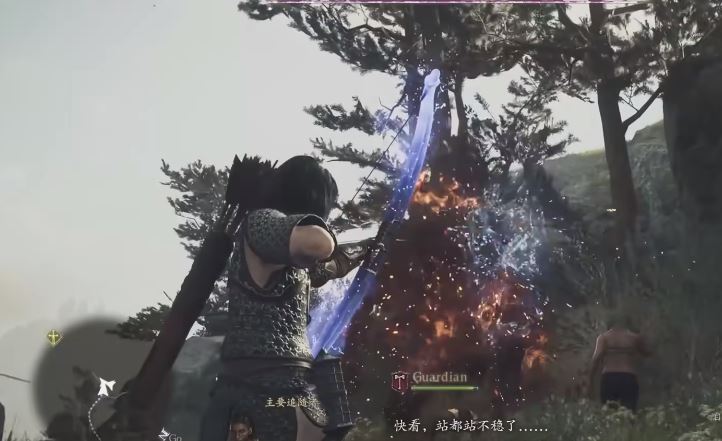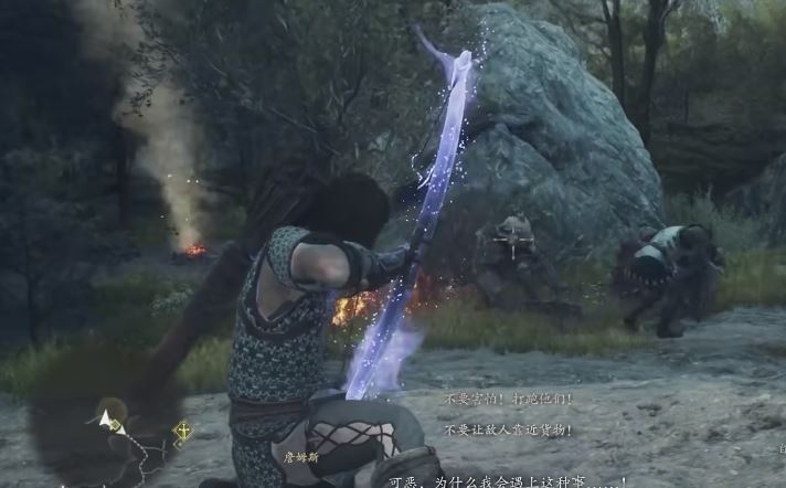 部分怪物打法:前期由於擊退能力不足,建議打小怪時候手動檔瞄頭,對持盾敵人可以用踩頭後射或者貫穿射擊,滑鏟本身也有攻擊判斷可以把敵人剷出硬直甚至倒地,對付群盜賊、群鳥、群狼建議先遊走射擊讓胖拉住仇恨以後找制高點或開闊點以後自動擋切怒濤或連續進行點名。食人魔、牛頭、獨眼巨人以及獅鷲可以用油箭點燃以後怒濤打頭,鎧甲獨眼巨人可以利用爆炸箭炸開頭盔,奇美拉也可以點燃以後怒濤打羊。對龍可以利用水箭打溼以後利用冰附魔或者隨從冰武進行凍結打靶,如果龍出技能讀條建議直接爆炸箭打龍心及時打斷,倒地以後怒濤打龍心,石化蜥蜴或毒蜥蜴可以直接踩頭後射接自動擋終結射擊,一般不死也會打翻肚皮補刀或讓近戰胖處決,