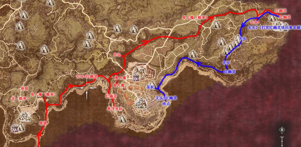 藍色路線營地附近可能還有獨眼,圖上沒標