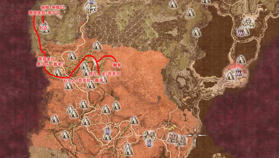 終點如果沒刷龍的話大機率刷奇美拉,不過不再同一點位,需要周圍找一找,也有可能直接睡在門口
