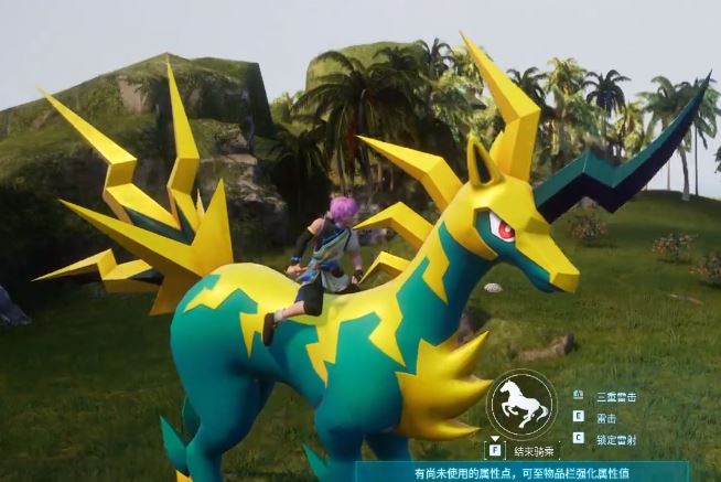還有一個優勢,雷角馬是轉屬性帕魯,可以玩人型帕魯,雷角馬還可以給他一個種子地雷果實,這樣他就有兩大神技了。技能果實可以問沙漠商人買,但雷擊就不好搞了。沙漠商人解鎖了15級烏龜隼就能去找沙漠商人,順便把他抓回來。