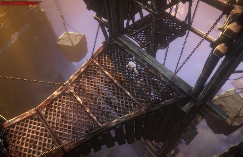 4: After climbing up, it will look like this. The next steps are relatively simple. Walk to the top of the beam on the right side and then make a big jump to the top of the crane on the right (you might die a few times, so find the right distance and angle).