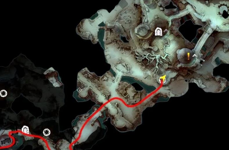 ラティゲンを救出した後、彼は聖都下水道の入口の場所を示します。南西に向かって進み、ヴォリックとの戦い時の正面玄関を通り抜け、オールバン湿地を通り過ぎ、水夫の砦に到着します。