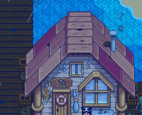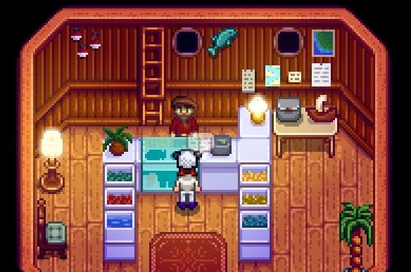 그 안에 들어가서 대장과 대화하면, 낚은 물고기를 팔아 돈을 벌 수 있으며, 낚싯대, 미끼 및 몇 가지 작은 도구를 구매할 수도 있습니다.