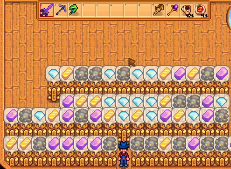 끝없는 행운의 조각상은 매일 이리듐괴, 금괴, 다이아몬드, 만상의 결정공 중 하나를 생산합니다(확률은 동일), 마을 주민의 생일에는 해당 주민이 가장 좋아하는 아이템을 생성합니다(고정, 켄트의 경우 항상 호두 구이를 생성). 생성된 물건을 모두 판매하면 일일 수익은 약 620에 가깝습니다(두 번째로 높은 보석 복제 기계의 경우 일일 수익은 195에 불과하며, 3배 이상 차이가 납니다).
